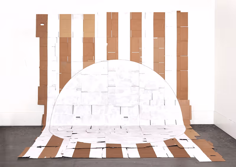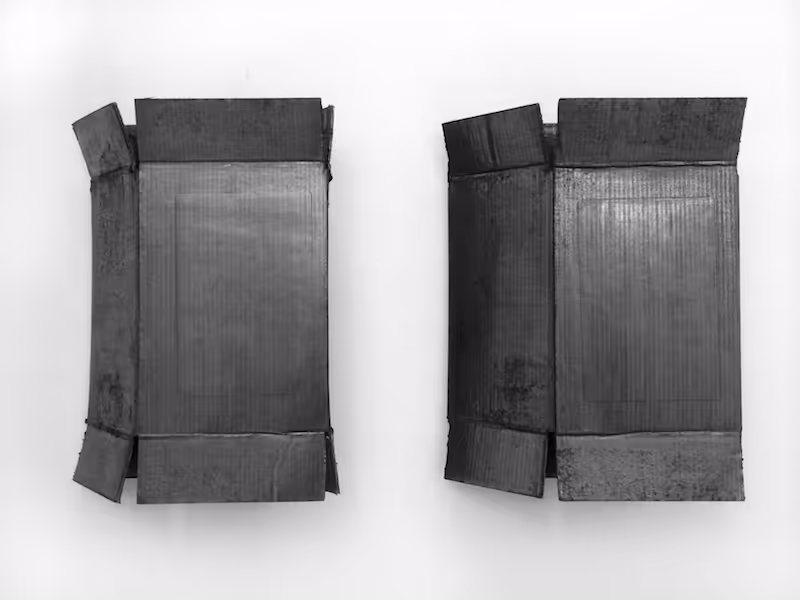Annesofie Sandal works with the discarded, the dirty, and the unwanted in sculpture, site-specific installation, photography, and video performance. She examines social and cultural hierarchies through the use of inexpensive and used materials. Her main material is found cardboard, that she transfigures with graphite, acrylic and oil paint to disguise the surface and to confuse the perception of the work.