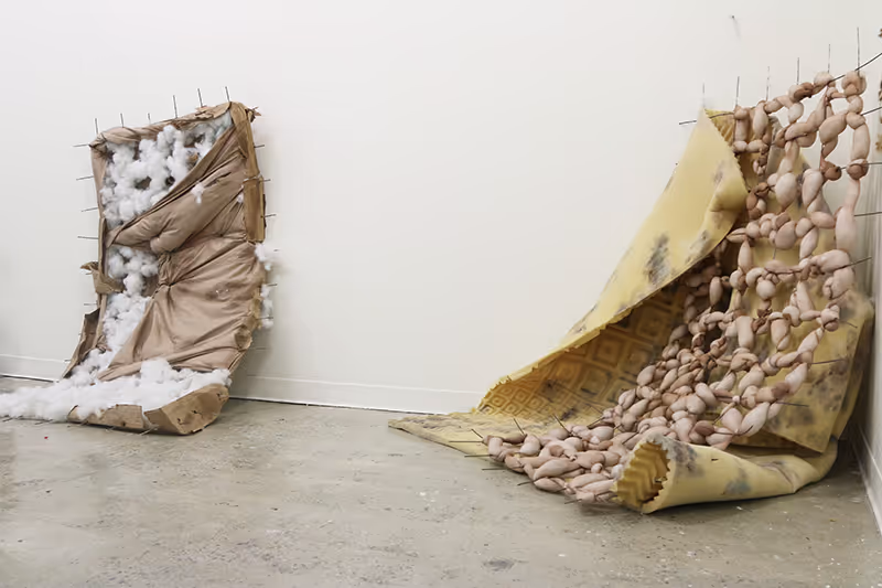 Multimedia artist, Bat-Ami Rivlin, creates installations, sculptures and digital artworks that explore bodily functionalities and roles in different social and artificial spaces. Concerned with what the artist terms as the 'performative aspects of the body', Rivlins work examine objects in the context of their interaction with the human body. Using found objects and scrap materials, the artist allude to the meat-like properties of the human flesh. Seeking to create a space between flesh and object, Rivlin’s work disrupts the designated social capacities for bodily existence and reinserts the corporal into domestic, intellectual, and intimate contexts.