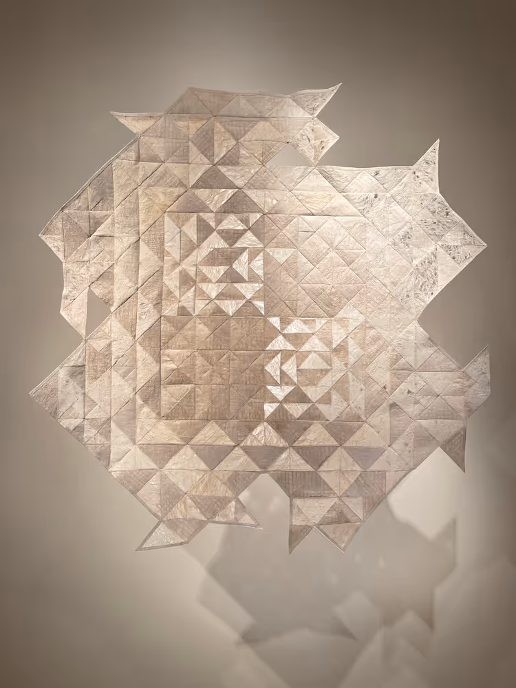 Chenta Laury is a Maui-based artist whose practice centers on the labor-intensive processing of fibers. She transforms natural materials—wauke, hau, wool, silk, and cotton—into layered 2-D, 3-D, and installation works that weave together abstract, representational, and conceptual vocabularies. Her art reflects on place, identity, belonging, and recurring themes of adaptation, diaspora, reconciliation, and the search for wholeness within shifting personal and political landscapes. Drawing from African-American quilting, Finnish/Scandinavian felting, and Hawaiian kapa (barkcloth) traditions, Laury merges heritage, concept, and materiality while challenging the divide between craft and fine art. By cultivating and harvesting much of her own material, she positions nature as both subject and medium, urging viewers to recognize its inherent beauty and value.