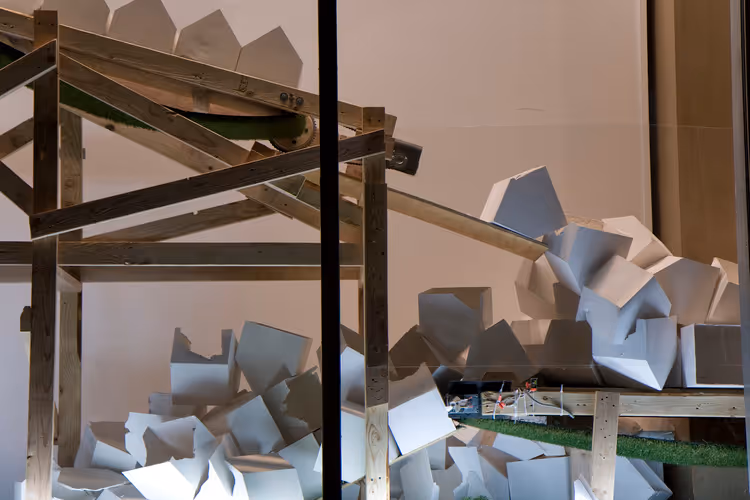 Christopher Robbins works on the uneasy cusp of art and community development, creating sculptural interventions in the daily lives of strangers. He uses heavy material demands and a carefully twisted work-process to craft awkwardly intimate social collaborations.