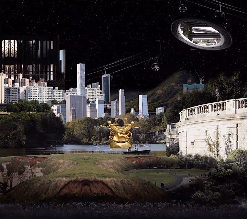 By collaging numerous videos and photos from different cities that she has collected, Hyemi Kim creates high-definition hybrid landscapes. From video to installation, she researches city structures and focuses on creating a complex digital utopia. Playfully destabilizing the boundaries of space and time, the busy and fantastic environment represents her scattered memories and experiences in contemporary life. Beneath the wealth of detail and activity, though, lies a sense of alienation, drawn from an immigrant’s experience of being lost between two homes.