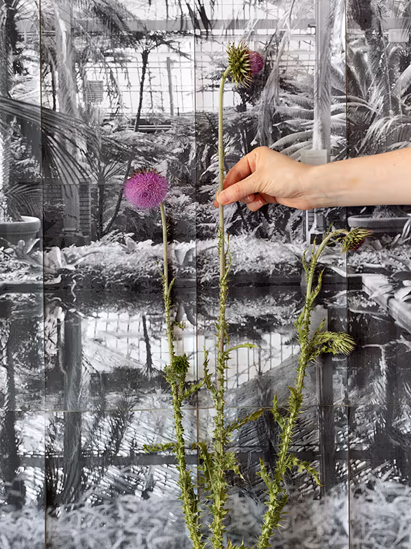 Jenny Rafalson's detachment and yearning for home as an immigrant and alien led her exploring and questioning the narrative and memory of belonging in a modern society, often through the use of plants. Rafalson photographys subjects that are a part of her life and have strong ties to her existence as an immigrant woman, such as daily moments, memories and events, which she appropriates into a yearning of belonging and home. She works on the border between directed studio work and documentary photography that aims to perpetuate a memory that may have not existed ever before. She mixes both and incorporates images such as plants, landscapes and herself into the images and the video.