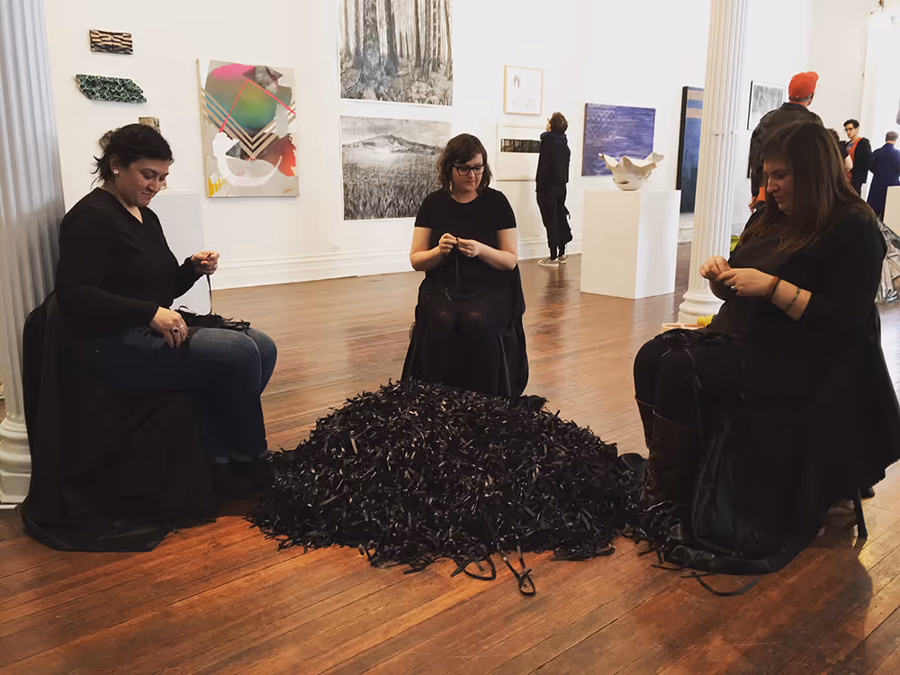 We are Lady Firm, a group of female artists who address issues of feminism, violence, gender inequality and injustice through creative performances and artwork. Lady Firm is a collaborative firm created by Priscilla Dobler, a textile sculptor, radiant genius Regina Ruff, an abstract painter and colorful crafty Maureen McCourt, a textile artist. Here at Lady Firm, we do our best to serve our community and people. Lady Firm is an artist collaboration committed to representing all persons regardless of race, sex, color, religion, sexual orientation, gender identity and disability. Interested in the politics of craft and fine art we create interactive performances allowing the viewers the opportunity to engage with the artwork and us.