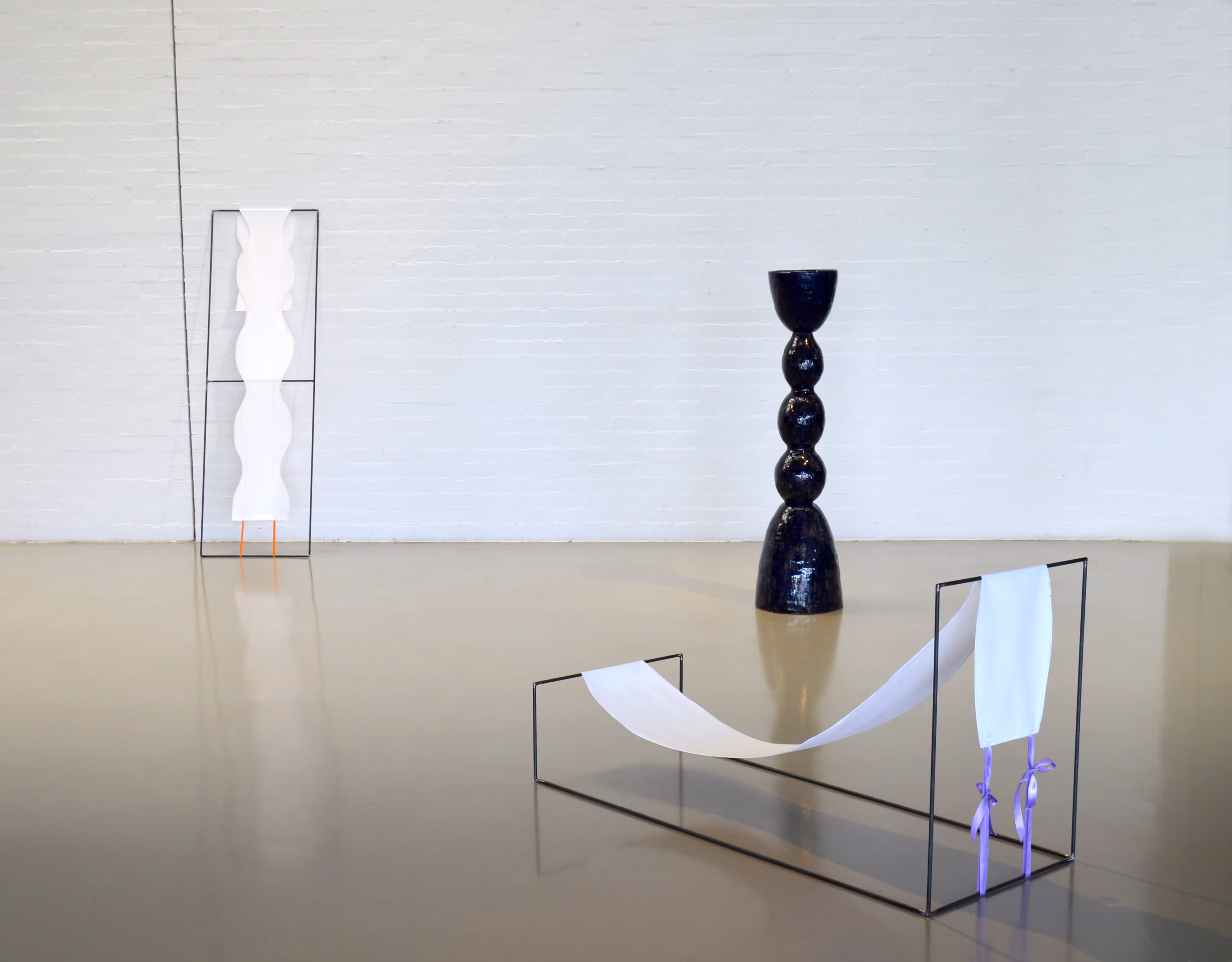 Mar Ramon's processual and theoretical research places the materiality of things at the center of interest. The dialogues and the constructive methods depend on the objectual nature that is articulated according to weights, resistances and fragilities. Everything is born from a conscious look around that reads the connotations that each thing brings to the final composition. The body is just another object, stretched, molded, hanging from a thread or placed in precarious conditions. Represented with ceramics, it brings a component of drama and fear of breakage. She looks at the prehensions that are generated between what surrounds us and ourselves and observes how ergonomics designs tools that adapt us and generate an increasingly minimal and determined gestural theater.