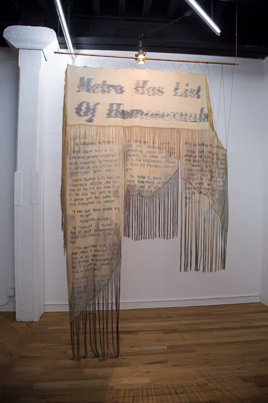 Rowan Renee explores how queer identity is mediated by the law. Through image, text and installation, they elaborate themes of authorship, representation and erasure in State records and personal archives. They use labor-intensive processes including weaving, printmaking and analog photography to appropriate and transform official records into counter-archives that repair histories of trauma. Through their genderqueer body, they articulate new possibilities for pleasure and justice for people living within conditions of abjection.