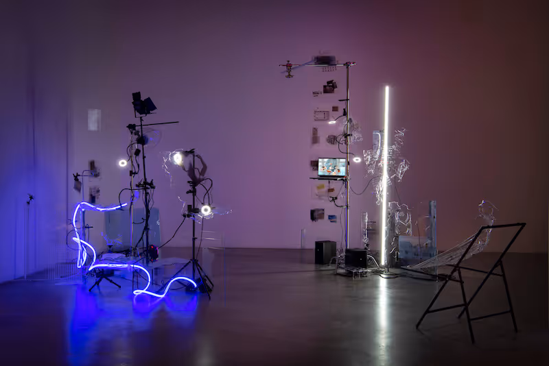 Tianyi Sun explores the re-creation of embodied experience and its inevitable failure. Through interweaving painting, sculpture, time-based mediums, poetry, and software, she composes responsive environments to excavate the affects of technology, and examine digital interfaces, communication systems, and archival structures as concurrent networks of power. Within which, she locates subjectivity, memory, and the body as ongoing processes that are oppressed and consoled. Moving against static, hegemonic ideals of cohesion and linearity, Tianyi’s practice is a co-creation with the audience and context in which it resides. Merging digital and physical spaces to invoke soft, intimate moments of incoherence and stumbling while constructing a parameter of questions: What are the boundaries between data, narrative, document, and experience within programmed systems and networked ecologies? How does the body perform, leak, and deteriorate while oscillating between public and private, reality and simulation, precariousness and preservation?