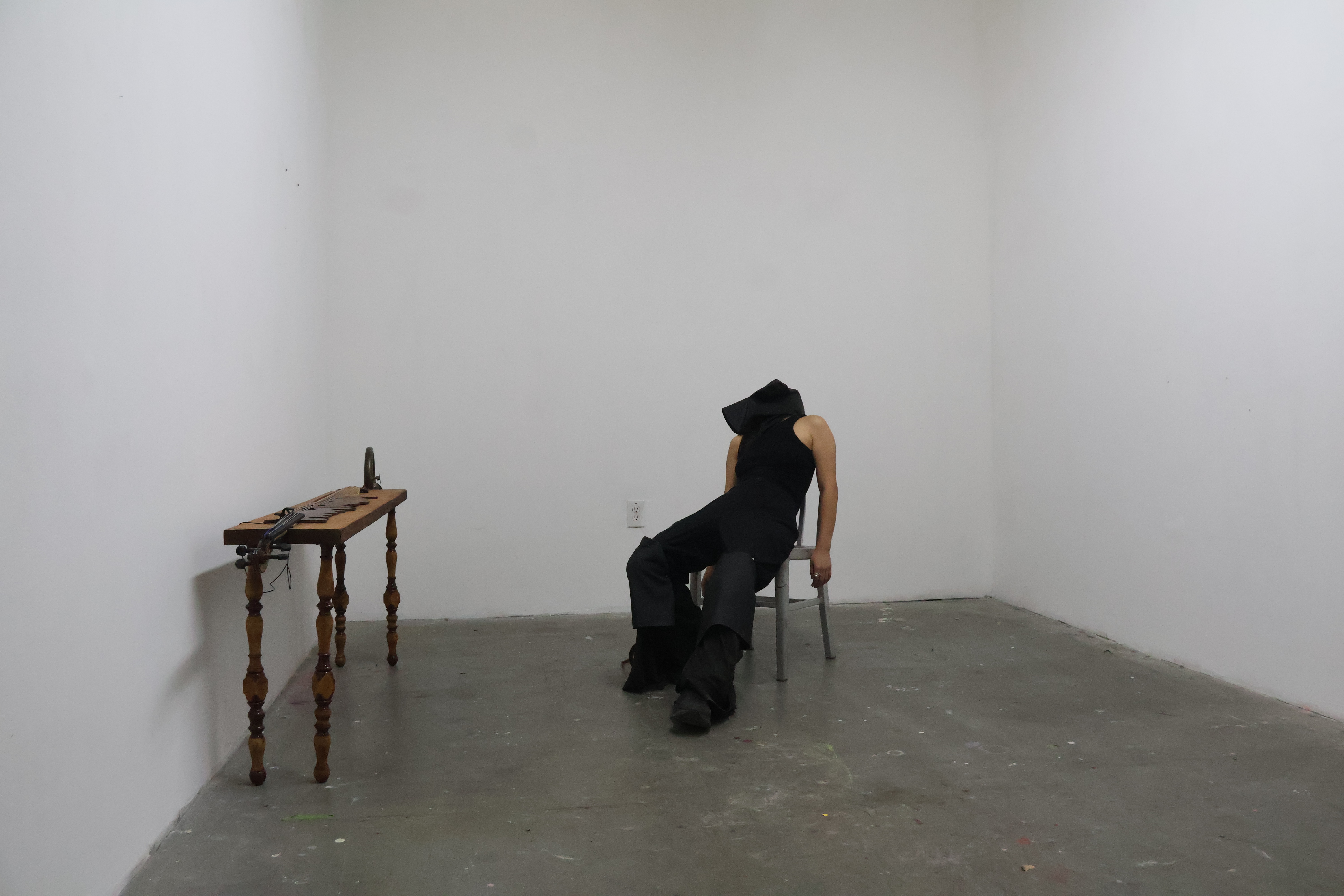 Beginning with sleep-talking, Yoon crawls from her studio into the gallery, tracing the fragile passage from unconscious utterance to conscious voice, accompanied by ambient sounds and car horns that emerge and dissolve into breath and rhythm. The performance culminates with Yoon singing an arranged rendition of “Suktaemeori” (쑥대머리) from atop a ladder—a mournful aria from the Korean pansori Chunhyangga, in which the imprisoned Chunhyang laments her disorientation and separation from her lover, unreachable even in dreams.
