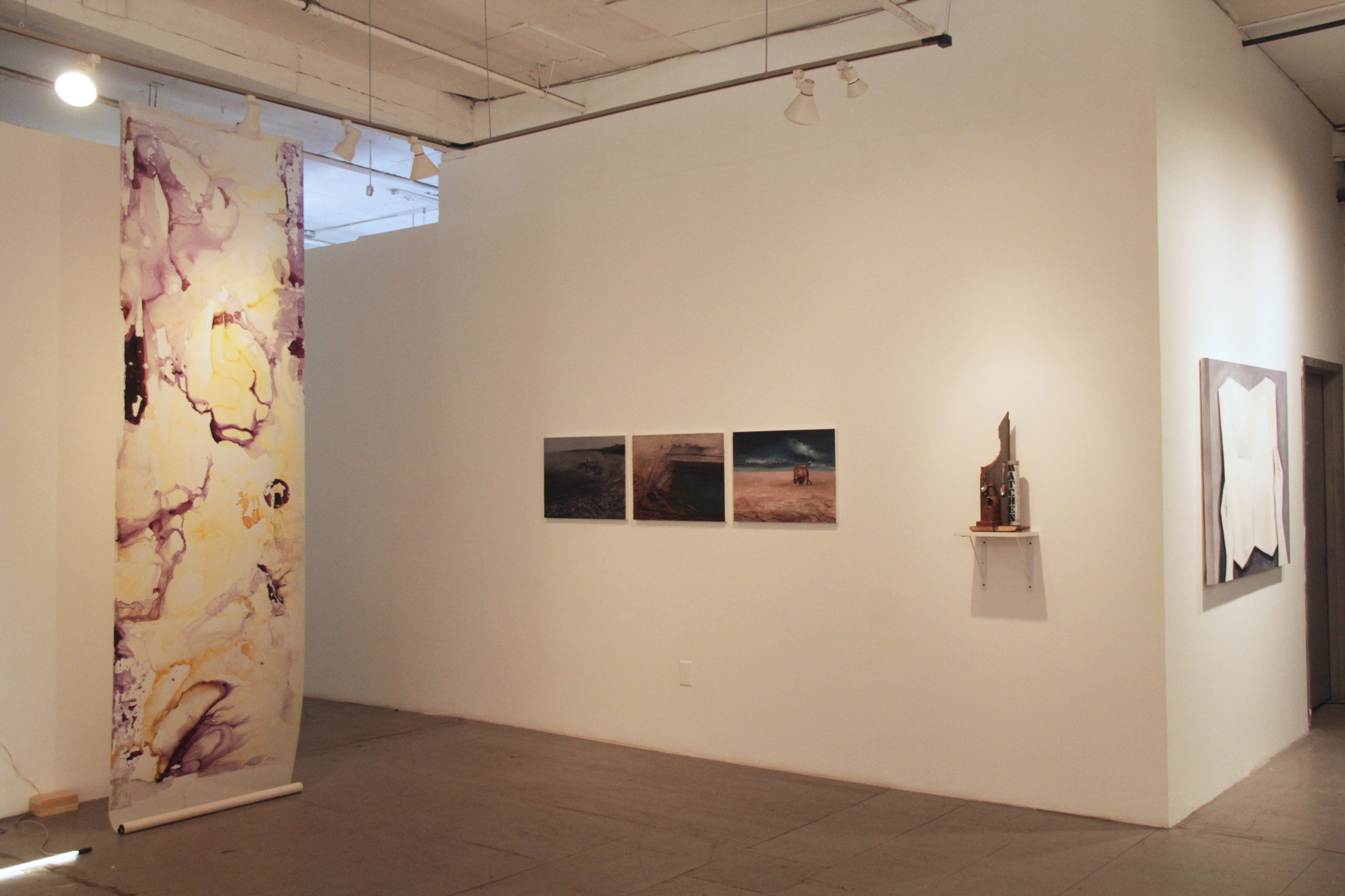 The New York Art Residency & Studios (NARS) Foundation is pleased to announce the annual Studio Artist exhibition, a showcase of the diverse community of artists working and creating at NARS year round curated by Eriola Pira. Aglae Bassen’s painting lends the exhibition its title and thematic principle. The question of how to orient and locate oneself in relation to space, the other, natural and social phenomena is foregrounded in many of the works. The studio, one’s painting practice and processes, and art as self-expression and “bearing witness” are positions to be explored and staked out. The very light of Sunset Park temporally locates Ioana Manolache’s work in her studio, even as they don’t refer to anything but the conditions of their making and the status of painting. Gus Wheeler’s paintings of fans and their placement in the gallery are meant to disorient and dislocate with their overwhelming familiarity. On the other end, global warming and environmental crises locate Elena Soterakis’ paintings in the here and now. There may not be a map or instructions for our way out of the dystopic future they depict.