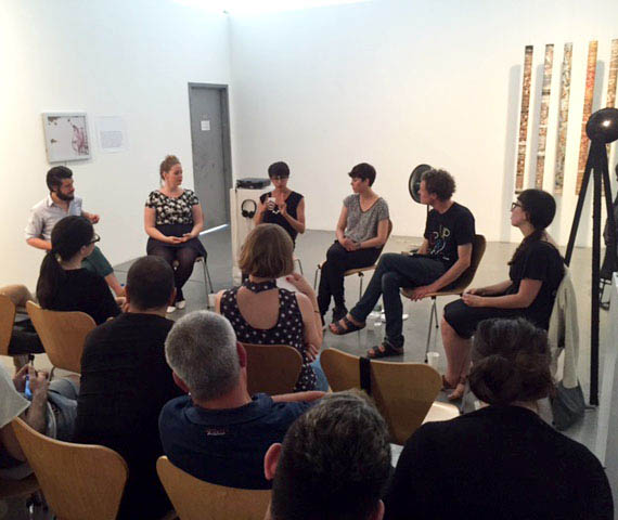 With artists Magali Duzant, Katrina Newmann, Yvonne C Roth, and Knutte Wester with guest curator Tina Kukielski.