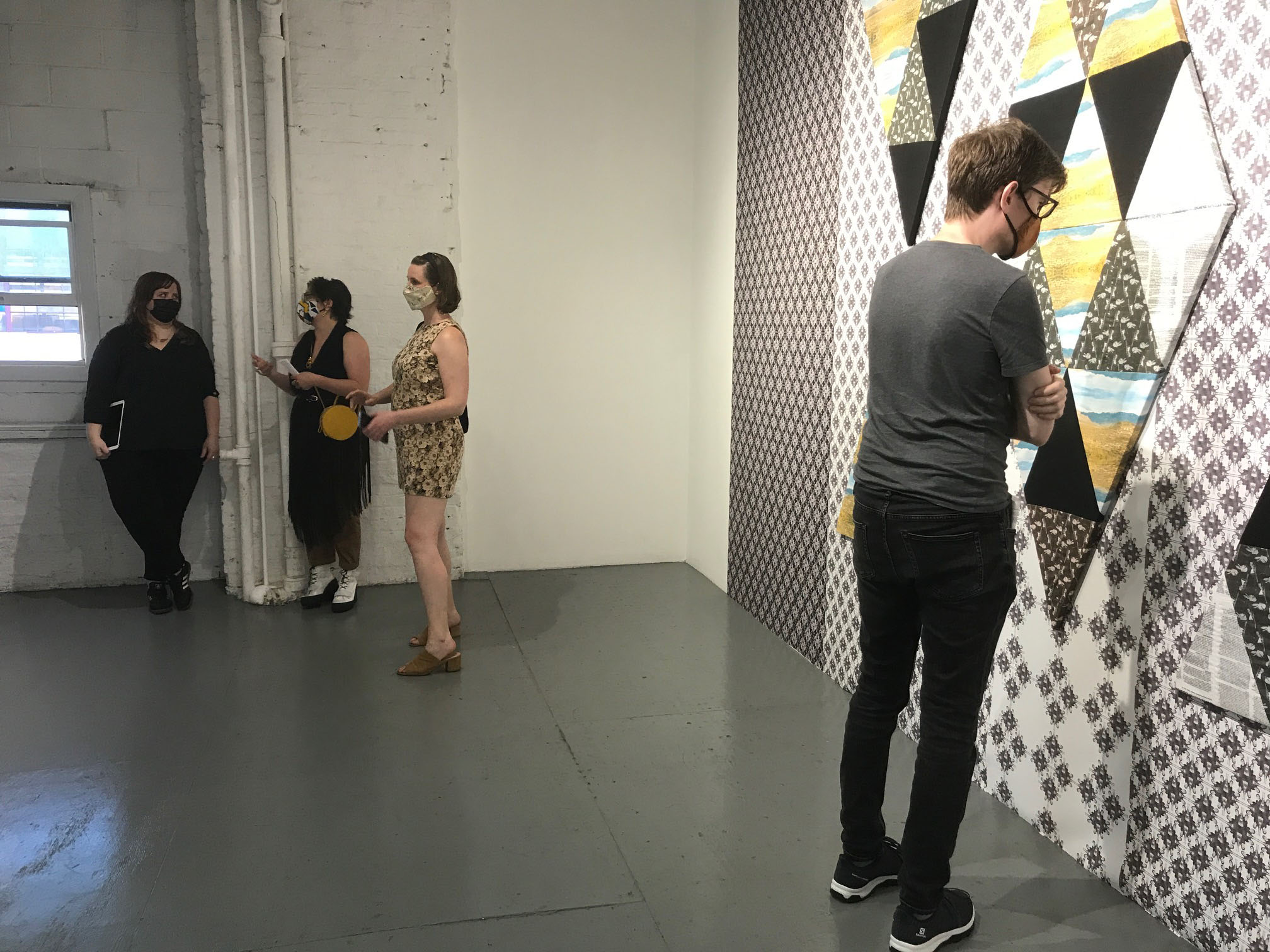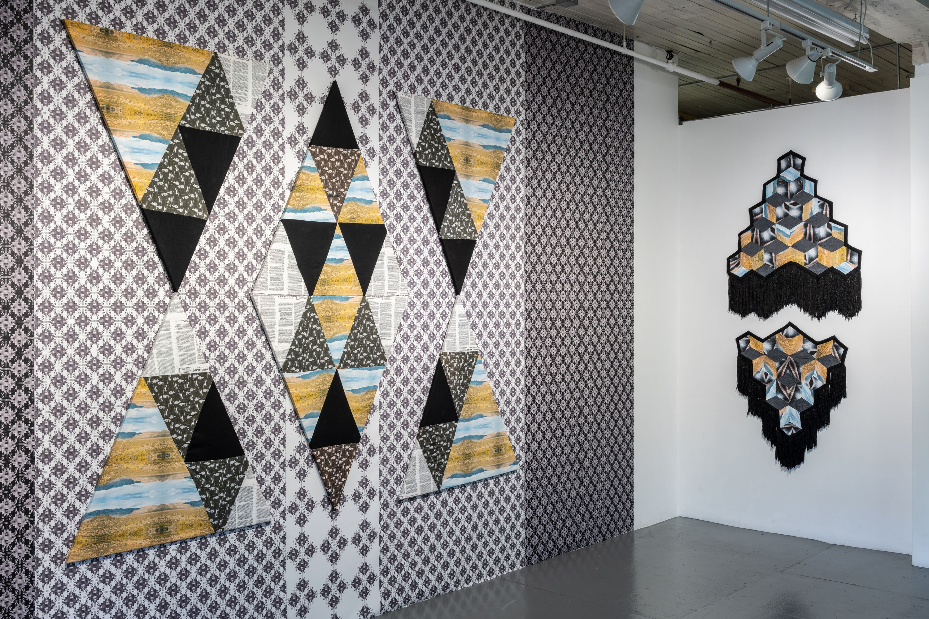 NARS is pleased to present Doing It For Ourselves, by Sarah G. Sharp. Doing It For Ourselves explores themes found in underground feminist publications from the early 1970’s that still resonate 50 years later. DIY instructions for women’s healthcare, taking up arms and learning to shoot, and video and Cable TV as tools for radicalization are explored through traditionally domestic forms like quilting, embroidery and wallpaper. Doing It For Ourselves includes an Augmented Reality application that reveals layers of related imagery, video, and sound.