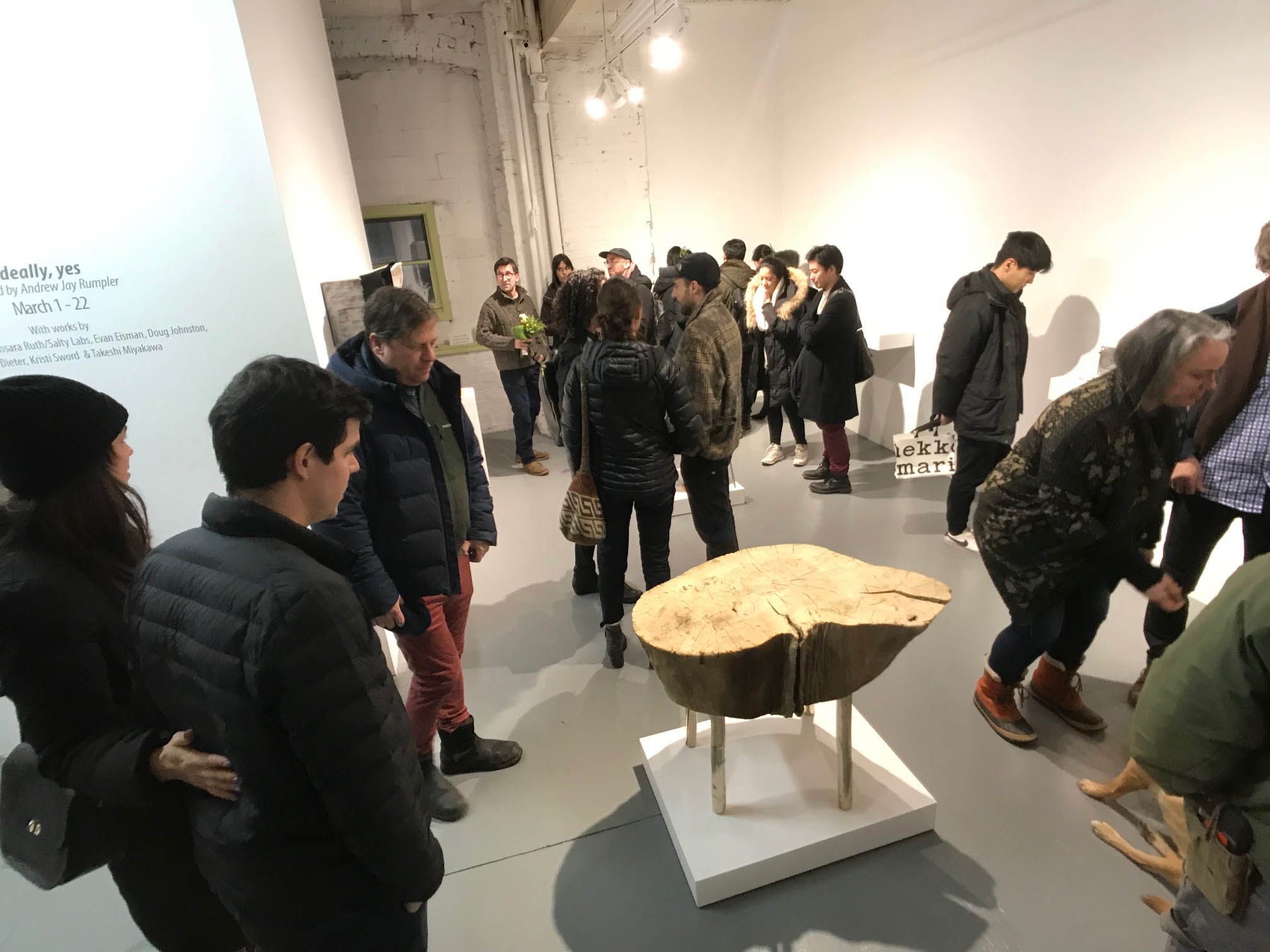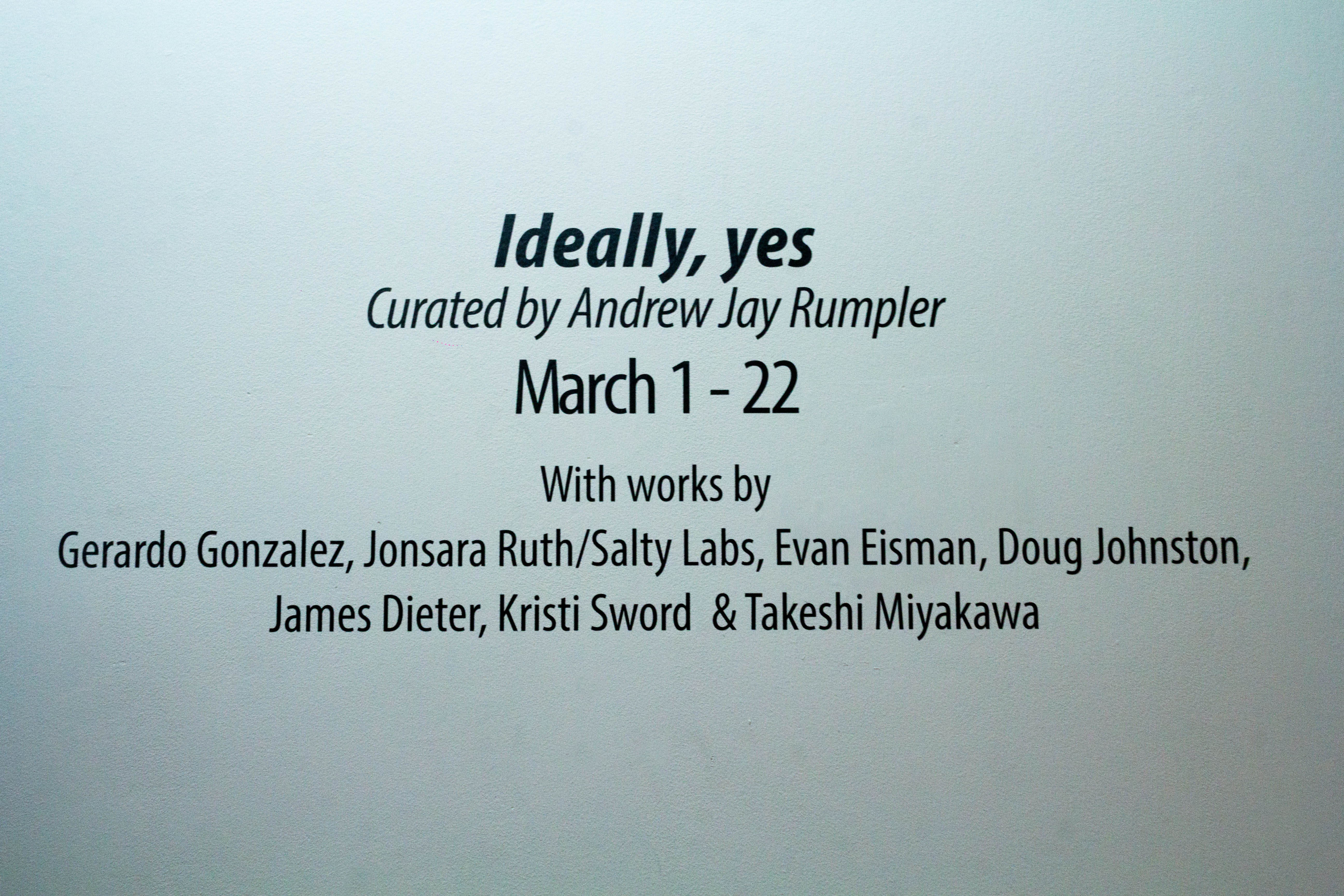 Ideally, Yes is a group exhibition of works by artist who's focus is on process and experimentation as main motivating force. Rather than fitting into one category or another, the works of these artists often straddle two or more disciplines, landing in a grey area. Between sculpture and design, between architecture and lighting. Between painting and sound. The constant however, that runs through all these works is the desire to experiment, and in doing so invent unique and personal methods of creating. The title "Ideally, Yes" is a reference to a common discussion or mode of understanding work between a creator and viewer in which questions like "does it provide x,y,z function?" or "does it work?" often arise. Where the starting point for these works might have been straightforward; to accomplish a particular goal or express a particular idea, the process of creating the work has spawned new ideas, shifting the focus subtly or dramatically. The tone of the answer (and in this case, title of exhibit), denotes a certain peace with the idea that perhaps something more important can be arrived at when allowing for a totally abstract investigation for investigation's sake, whether that be into a material, a process, a technology, or something else.