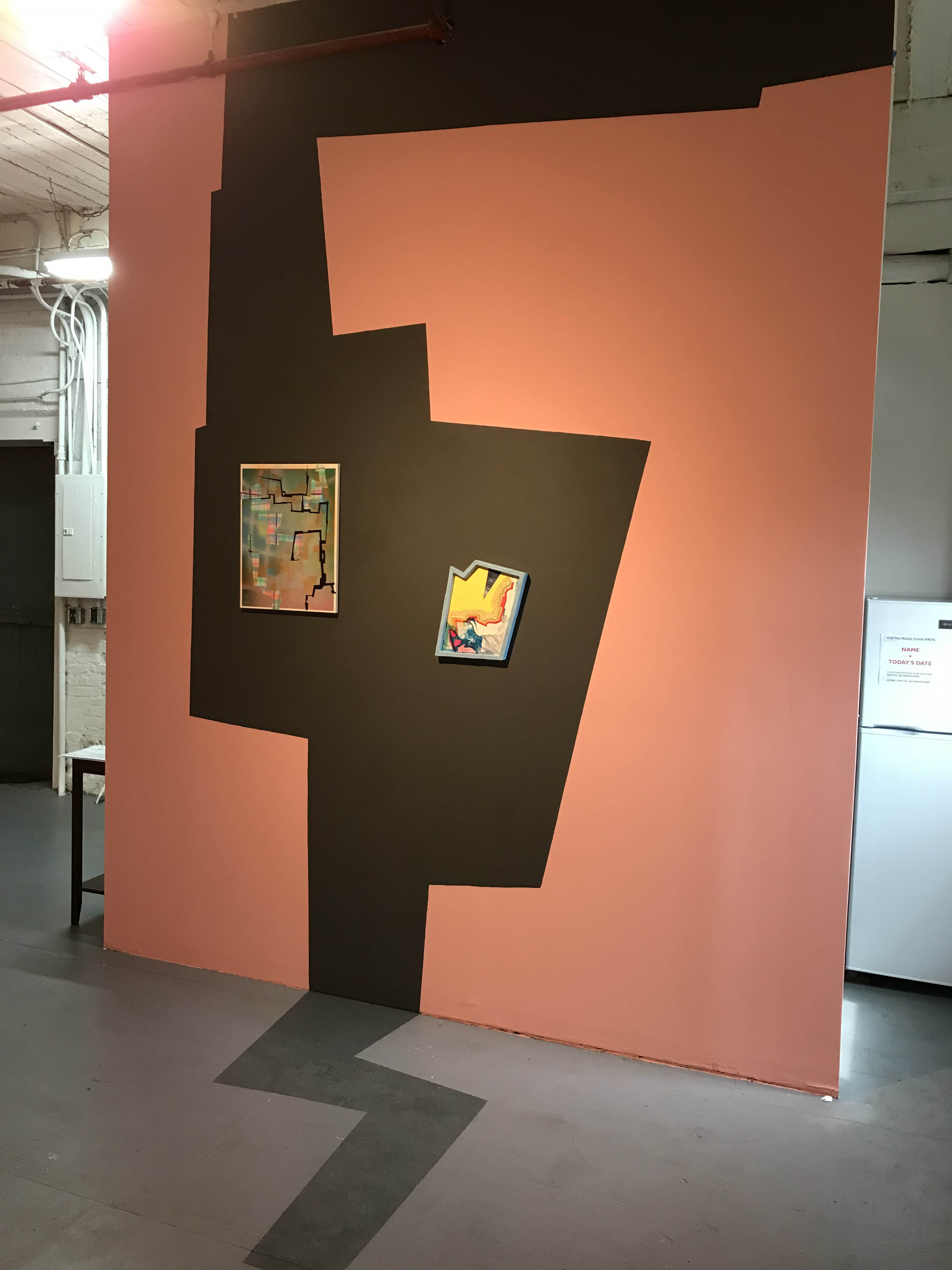In Part + Parcel Epstein and Kelly, first time collaborators, each explore the ideas unique to their own practices while simultaneously beginning a new conversation. While their works exist separately in the gallery, the surrounding space is painted by both artists-- creating a visual bridge between the two practices. Decisions that get made in private in the intimate space of each artist’s studio have morphed into a public dialog as Epstein and Kelly negotiate painting decisions together for the first time.
