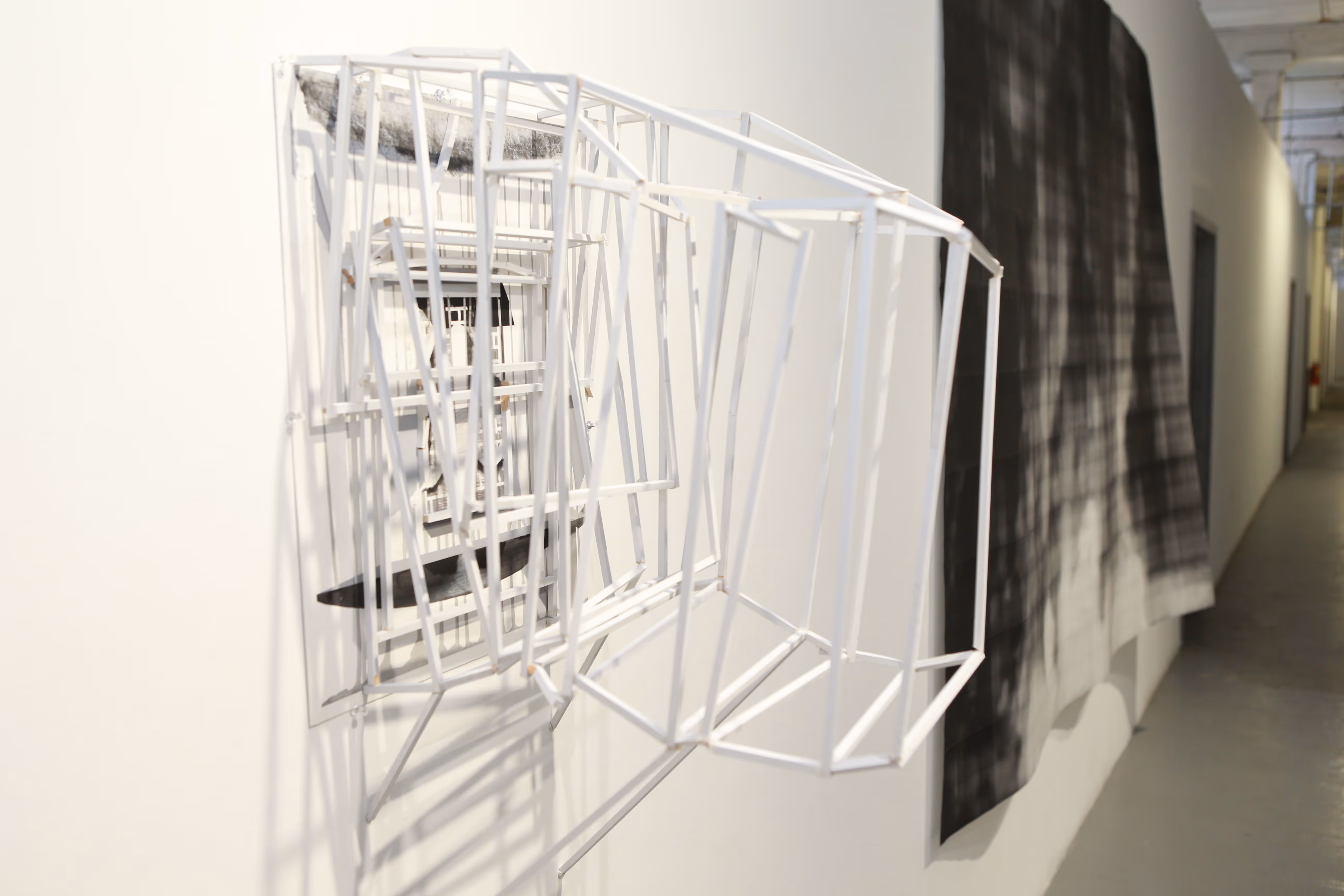 Each work threads a series of unseen structures arising from ideas related to the ways in which images are created, distributed and presented; the ways in which we experience space; and the ways to reconfigure and reveal the layers of an industrial apparatus that remains unknown.