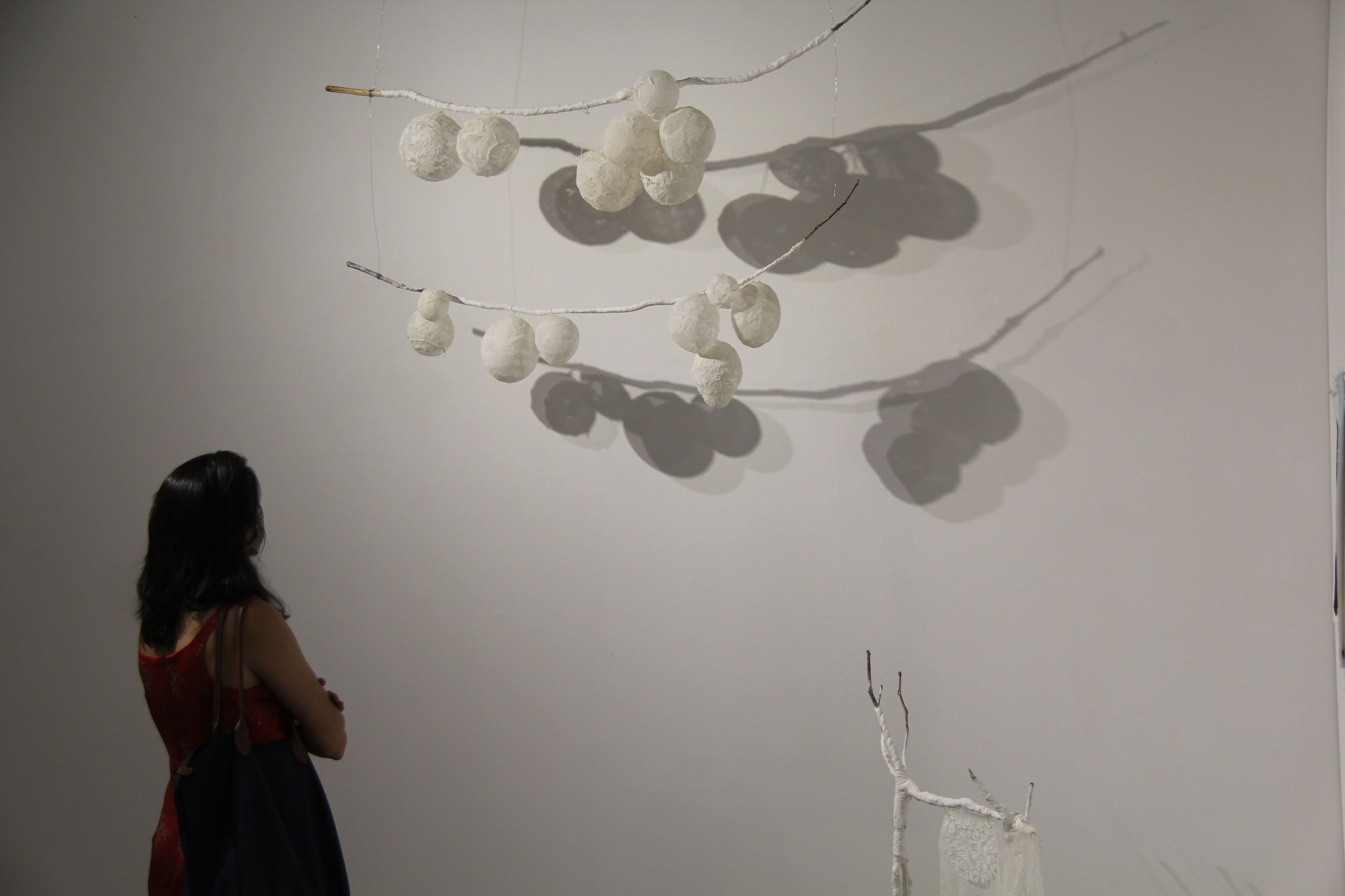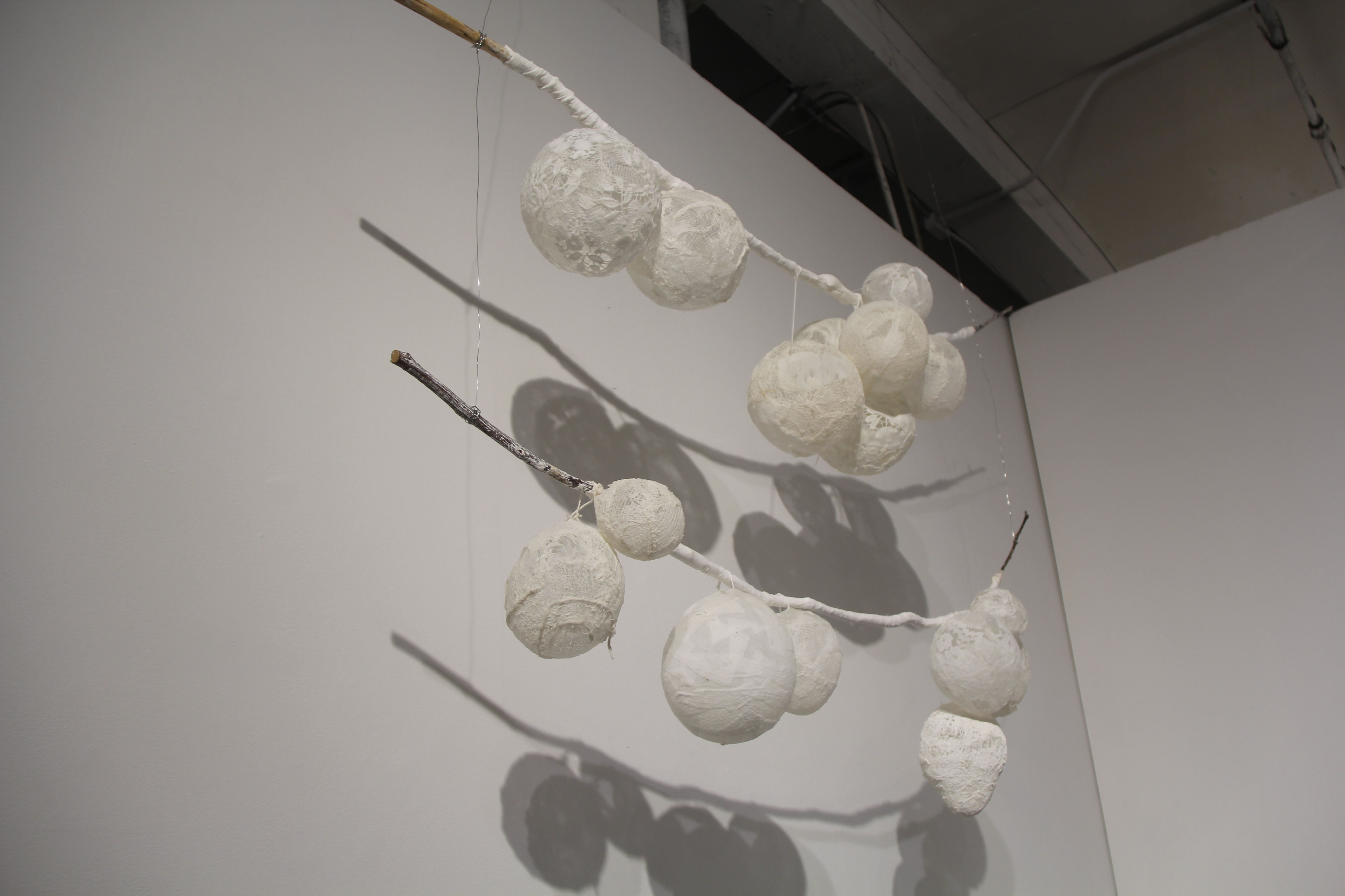 We Become Present centers the attention on works that were created during the pandemic - a time filled with grief, tension, despair and uncertainty. For the artists in this exhibition, a way to cope with world events has been through their artistic practice. Some have focused on the healing processes and refuge present in nature, looking at its cycles and repetitive actions. Others have created pieces that are meant to be activated - by movement, sound or as a form of protest. Several have used their art making to create their own hybrid spaces and fantastic worlds. The studio space has become a shelter, but also a space for transformation and for recording the passage of time.